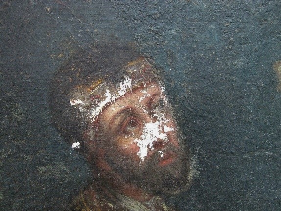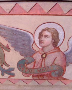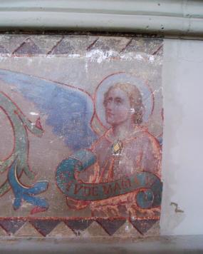 Nettoyage, comblement et réintégration des fonds et motifs du mur Ouest de la chapelle-réfectoire.