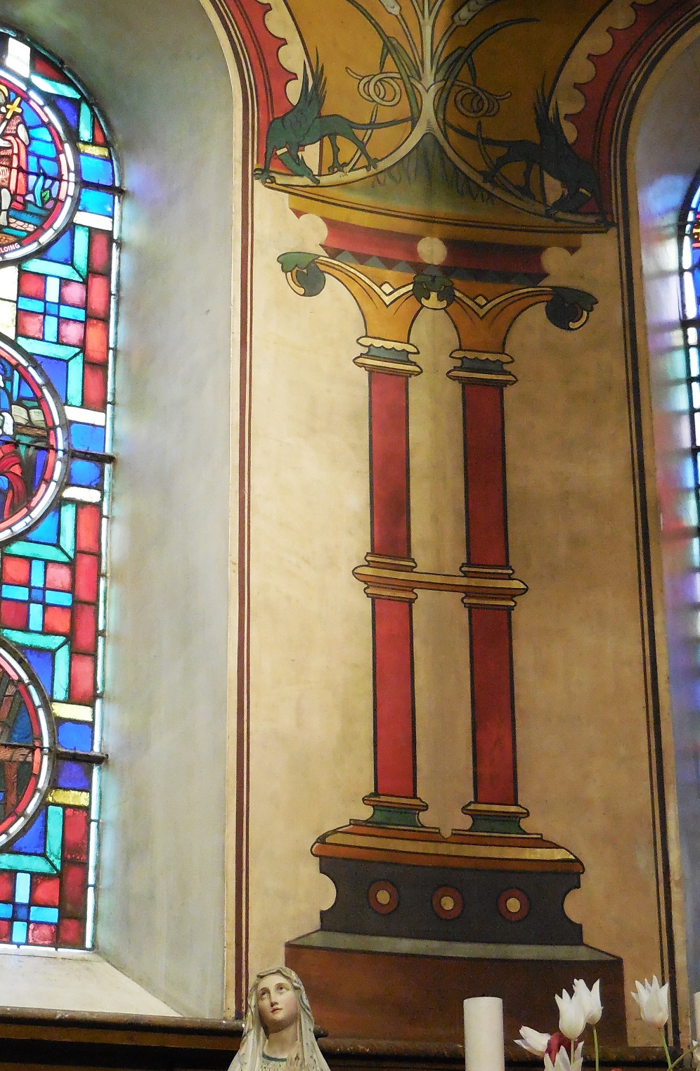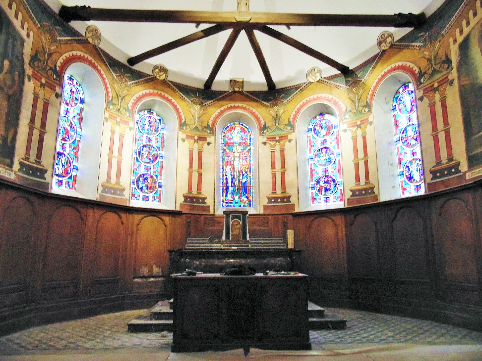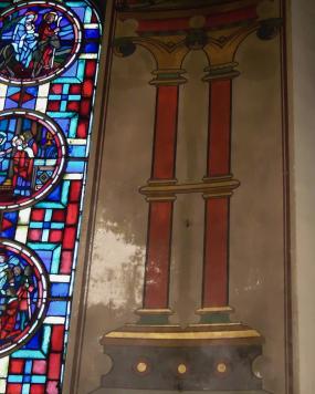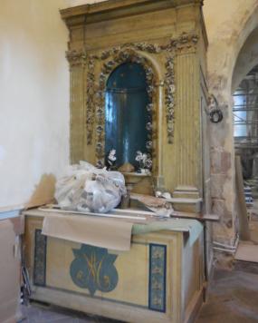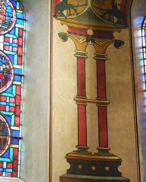 Avant, pendant et après nettoyage et restauration de la peinture à fresque du chœur.