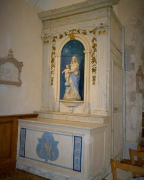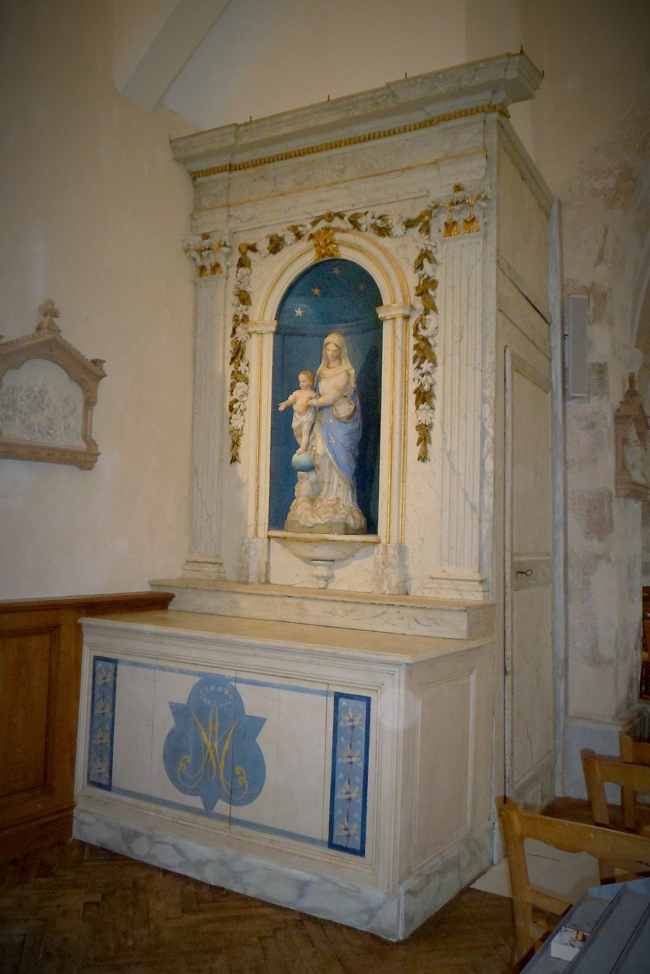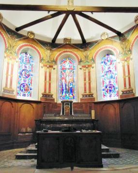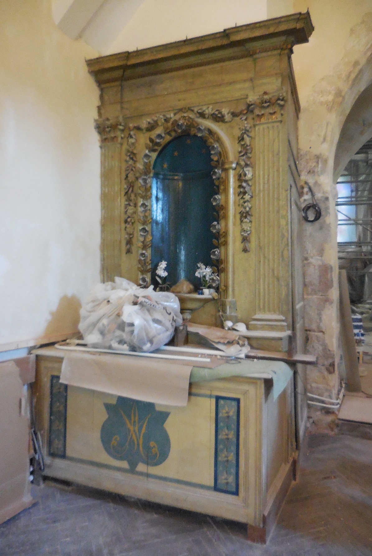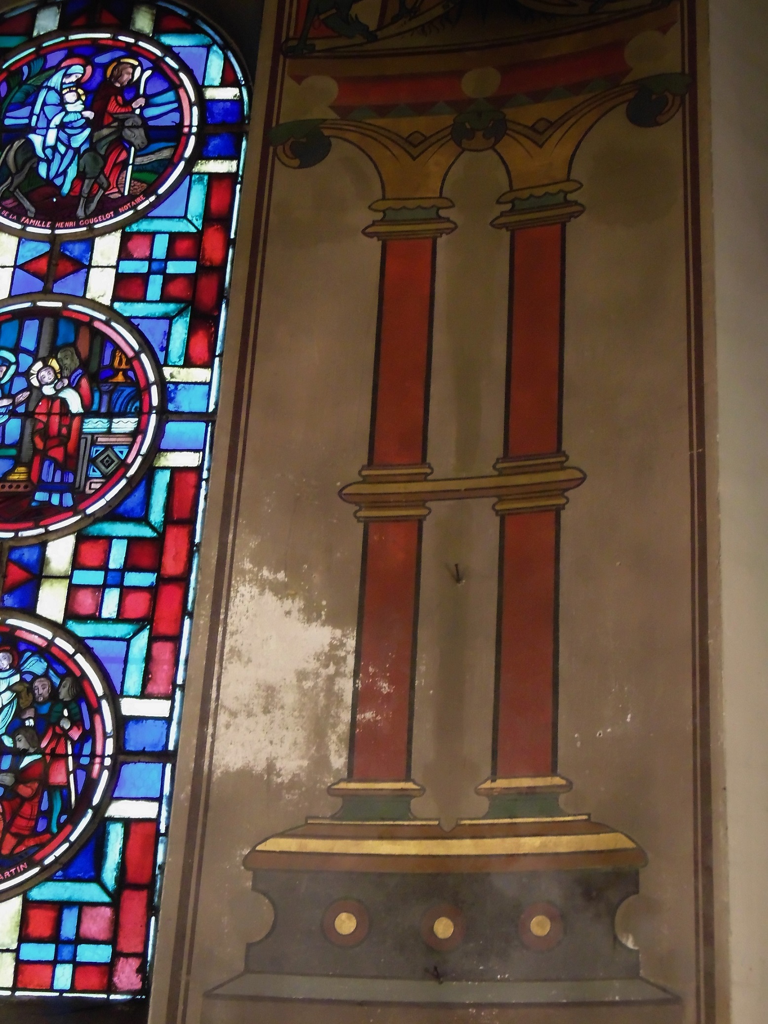 Avant, pendant et après nettoyage et restauration de la peinture à fresque du chœur.