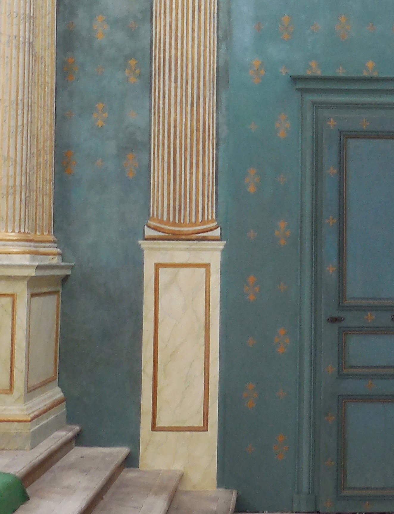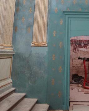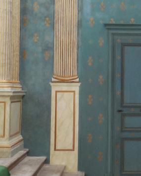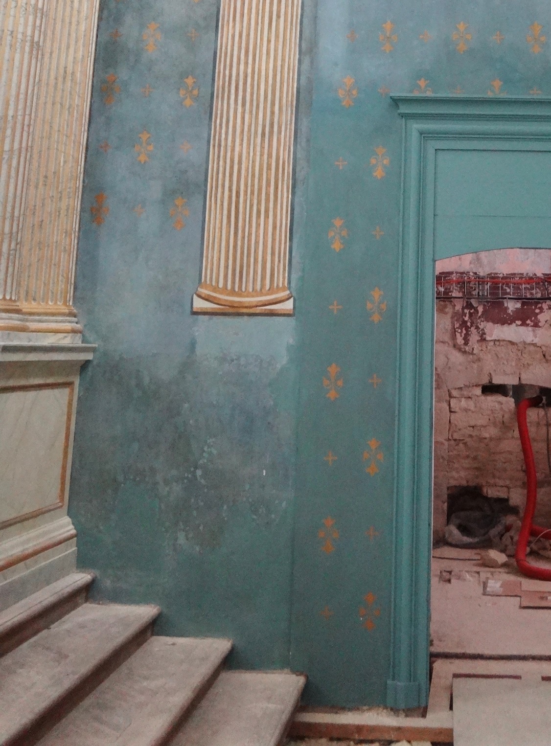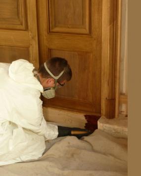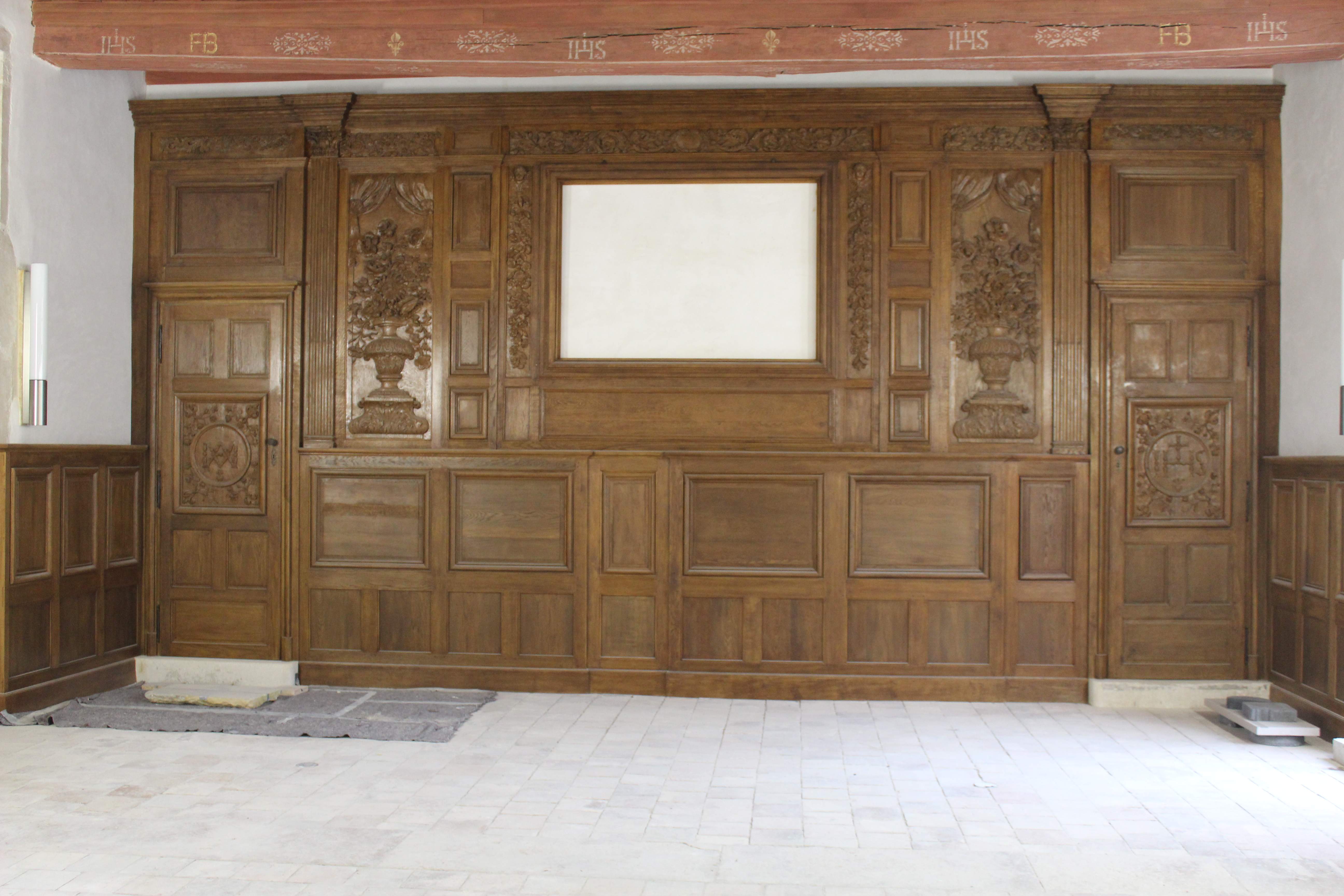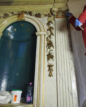 Application d'une patine d'harmonisation aux droits des bois neufs de la salle des apothicaireries.