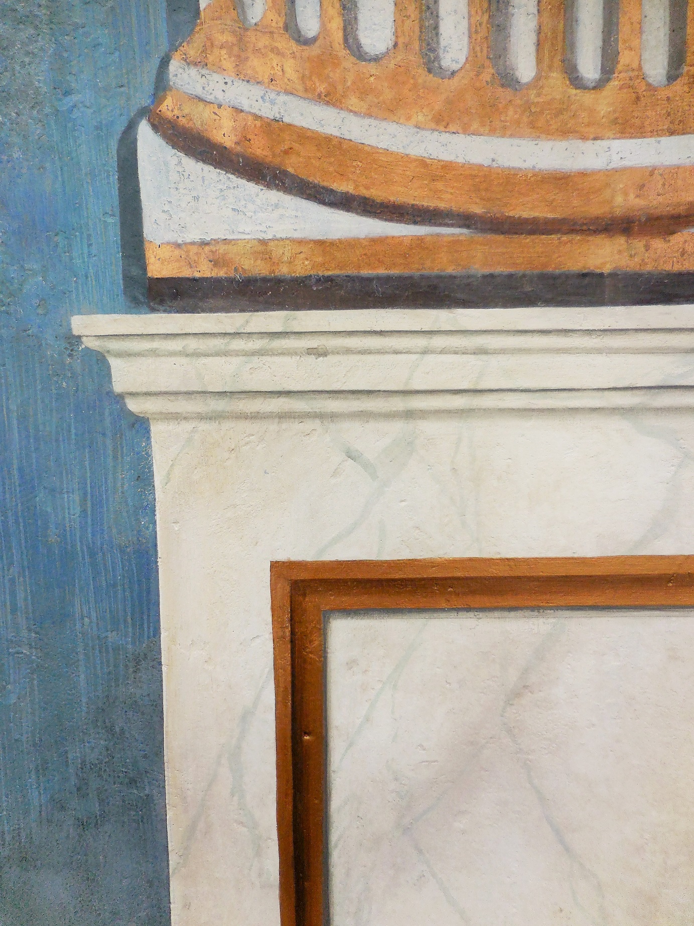 Avant, pendant et après création d'une base de colonne en faux-marbre.